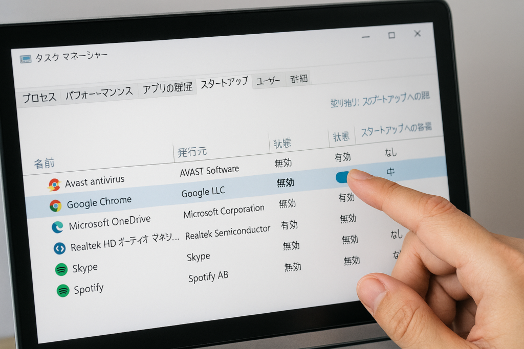 「Ctrl + Shift + Esc」 を同時に押して、タスクマネージャーを開く - 上部のタブから「スタートアップ」を選ぶ