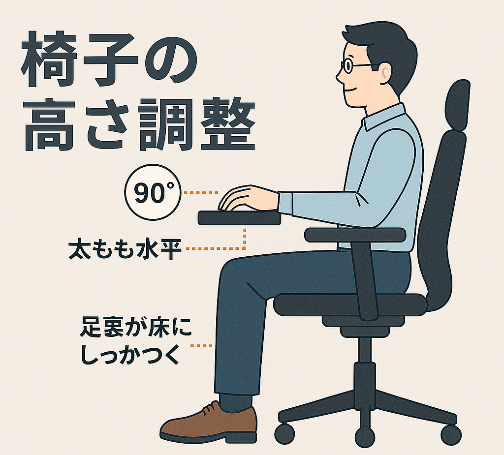 椅子の高さは「肘90度」「太もも水平」が基本